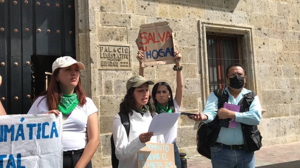 Las y los integrantes de Friday for Future Guadalajara frente al Palacio Legislativo se realizaron la lectura de su pliego petitorio que contenía, en su mayoría, quejas y sugerencias dirigidas hacia el gobernador de Jalisco, Enrique Alfaro Ramírez.