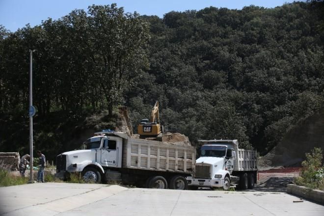 Durante los trabajos realizados el jueves 22 de septiembre, se evidenció también la presencia de dos camiones que recibían el material geológico retirado de la ladera por parte de empleados contratados por el Fraccionamiento Los Robles, el cual promueve una ampliación de sus instalaciones para albergar más viviendas contiguas al Área Natural Protegida.