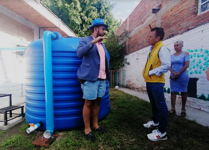 Desde el Jardín de Niños “José Vasconcelos”, en la colonia Benito Juárez, de Guadalajara, el alcalde Pablo Lemus Navarro encabezó la entrega de los sistemas de captación que pretende beneficiar a cinco mil 300 alumnos; en conjunto, las 14 escuelas tendrá la capacidad de almacenar 4 millones de litros de agua al año, equivalente a 400 pipas.