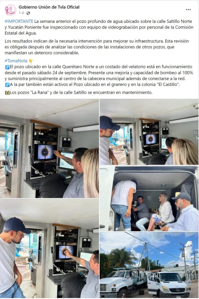 De acuerdo con una publicación en redes sociales del gobierno municipal, los resultados de dicha inspección arrojaron que: «será necesitará de una intervención para mejorar su infraestructura. Esta revisión será obligada después de analizar las condiciones de las instalaciones de otros pozos que, de igual forma, manifiestan un deterioro considerable».