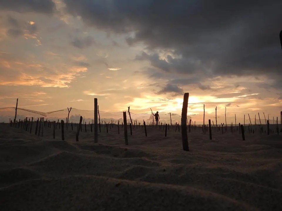 Transporte y sembrado: Una vez que se colectaron los huevos se transportan ya sea a pie o moto, dirigiéndose directamente y lo más pronto posible al corral de incubación. En este sitio se hace un hoyo similar al que hace la tortuga con aproximadamente 45 cm de profundidad, y en el fondo de éste se saca arena de las paredes para dar la forma de cántaro semejante al que hace la hembra; si la cantidad de huevos es mayor de 80 se dividen en dos partes iguales, depositándolos en dos hoyos diferentes pero continuos, esto con el propósito de incrementar los índices de eclosión de crías de tortuga marina, lo cual ha dado buenos resultados. Los huevos son colocados con cuidado y se tapa el nido colocando una estaca con un número de acuerdo al orden en que llegó al corral.