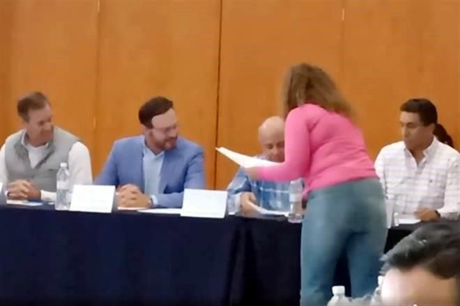 Alicia Córdova, vecina de Chapala y activista, tomó el micrófono durante la sesión para urgir a la Conagua a tomar medidas ante las invasiones, ya que debido a la inacción de la autoridad han sido los ciudadanos quienes han tomado medidas como derribar mallas de invasores que han incluso construido particulares dentro del lago.