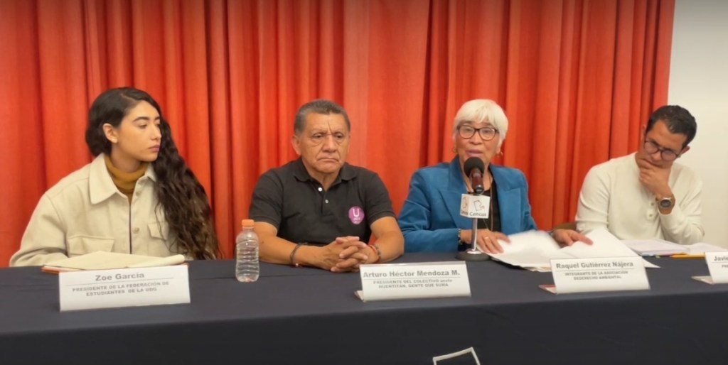 En conferencia de prensa asistieron ex presidente de la FEU, Javier Armenta, quien enfrenta un proceso legal, por defender el terreno de Huentitán; la presidenta de la FEU, Zoé García, y la representante de la Red Metropolitana en Defensa de los Parques, Raquel Gutiérrez Nájera, quien reveló que la Secretaría de Medio Ambiente podría emitir un decreto para que la barranca de Huentitán sea área natural protegida.