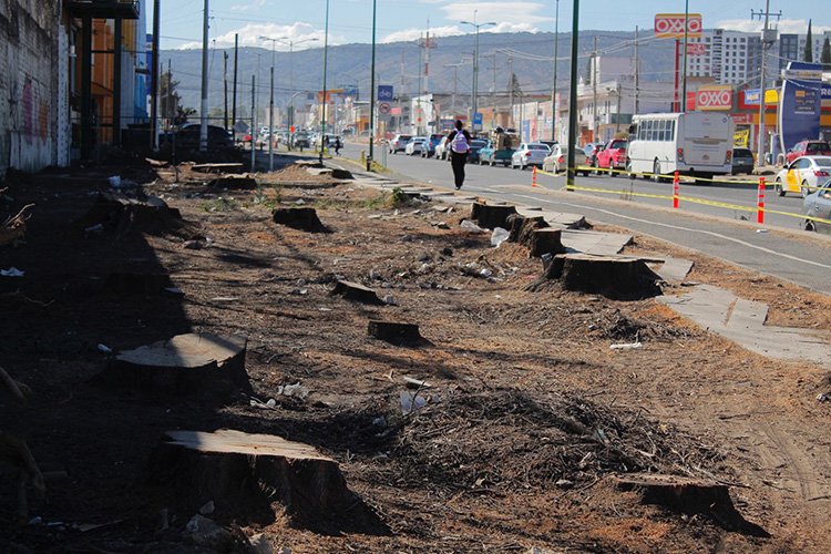 La tala, a causa del arranque de las obras de ampliación en prolongación Mariano Otero, ha provocado el corte de un número desconocidos de árboles frondosos y antiguos.