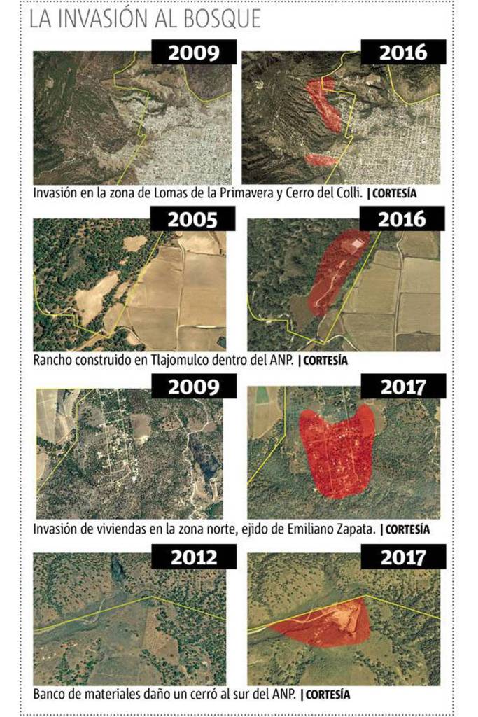 En otras zonas como las faldas del Cerro del Colli y hacia el noreste, en el ejido de Emiliano Zapata, es un tema de tintes socioeconómicos: “Hemos planeado una estrategia de intervención. Primero atacar el crecimiento del fenómeno y proponer alternativas. No podemos llegar a demoler las casas. Es un tema complejo porque son personas con alto nivel de marginación. Se siguen los procesos jurídicos competentes, pero el abordaje de este tema requiere una estrategia integral que pueda darle una alternativa a estas personas”.