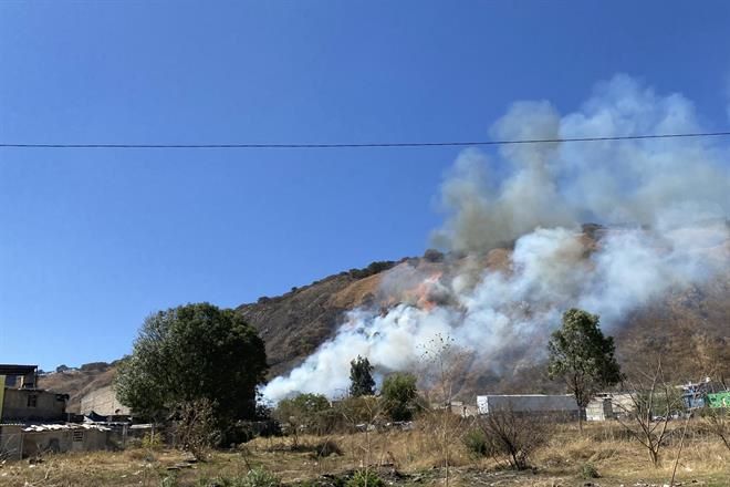 Guadalajara, México(19 marzo 2023).- Dos incendios forestales iniciados la tarde de este domingo son combatidos por brigadas de distintas corporaciones en el Área Metropolitana de Guadalajara, uno en el cerro del Colli, dentro del bosque La Primavera, y otro en El Nixticuil.