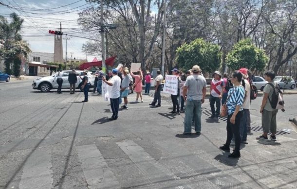Vecinos del Parque San Rafael que se oponen a las obras que se realizan en el área verde para la construcción de un colector pluvial, se manifiestan y bloquean la avenida San Jacinto a la altura del ingreso de este espacio, entre las calles Medrano y Adrián Puga.