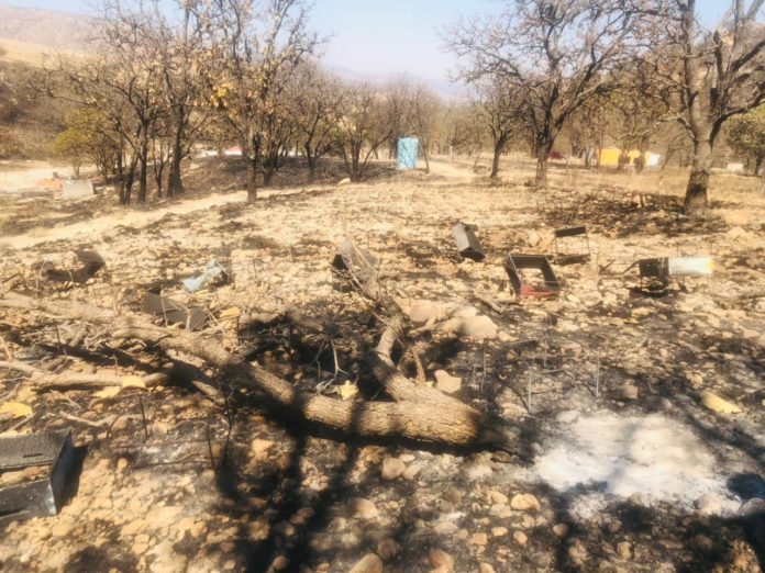 “En colmenas no tenemos el dato exacto, pero fueron aproximadamente 60 colmenas, no tenemos la cantidad completa porque lo único que hemos visto son las cajas y otras ya desaparecidas”.