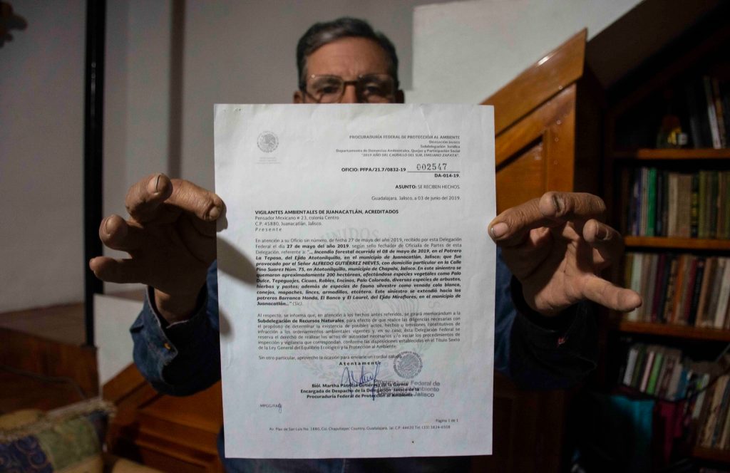 Desde el 2004, cuando fueron nombrados vigilantes ambientales, Pedro De Anda llevó cada año a la Profepa los reportes mensuales que hacían sus compañeros sobre cacería furtiva, ejidos y potreros quemados, las coordenadas de los cerros talados, y la flora y fauna dañada, a fin de que ese organismo gubernamental acudiera a revisar y, en caso necesario, proceder con multas, clausura o 36 horas de arresto administrativo.