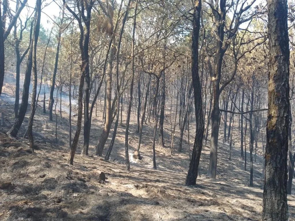 El incendio consume parte del Área Natural Protegida en el predio El Madroño Quemado del municipio de Tecolotlán.