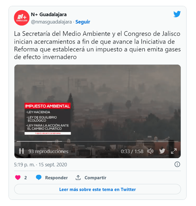De acuerdo con los análisis que ha elaborado el Gobierno estatal, “la cuota adecuada para el impuesto a emisión de CyGEI (Compuestos y Gases de Efecto Invernadero) para el Estado de Jalisco, es de MXN 125 por tCO2e emitida”.