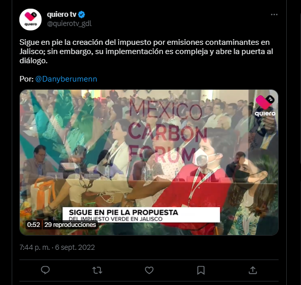 El 6 de septiembre de 2022, el gobernador Enrique Alfaro Ramírez señaló que la aprobación del impuesto se dará de forma consensuada con el sector empresarial: “No vamos a tomar una decisión unilateral; ese fue el compromiso con las empresarias y empresarios de Jalisco pero ya en el Congreso del Estado está la propuesta para que podamos tener un inventario fiable del tema de emisiones, y a partir de eso podamos construir un acuerdo con las empresarias y empresarios de Jalisco, un modelo de impuesto a las emisiones que sea ejemplo para todo México”.