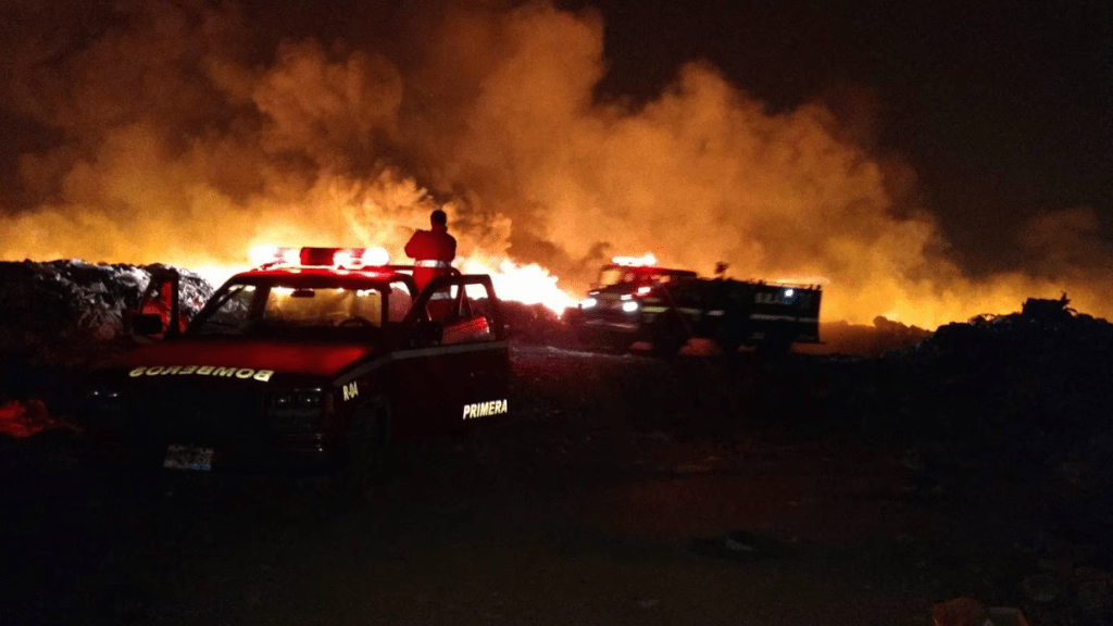 A decir de autoridades municipales, el incendio que se inició este lunes fue provocado, según afirmó el alcalde Antonio Casillas. Después de ocho horas de combate, las llamas lograron fueron contenidas y sofocadas, pero el fuego alcanzó plástico y otros materiales, generando una humareda tóxica que se propagó hacia la ciudad de Guadalajara.