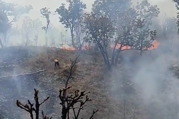 El Comité en Defensa del Bosque Nixticuil informó que su brigada comunitaria combate un “fuerte” incendio registrado en esta zona forestal, en una zona aledaña al hospital Dr. Ángel Leaño.