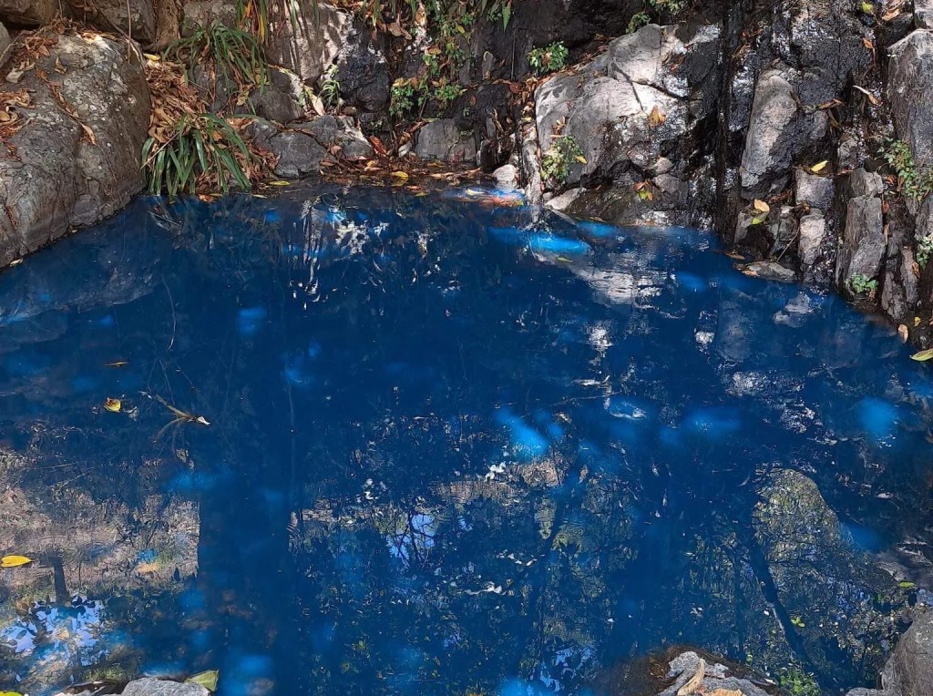 El agua se tornó de un color azul brillantes anormal y se le formó una capa grasosa en la superficie, según puede notarse en las fotografías compartidas por Protección Civil.