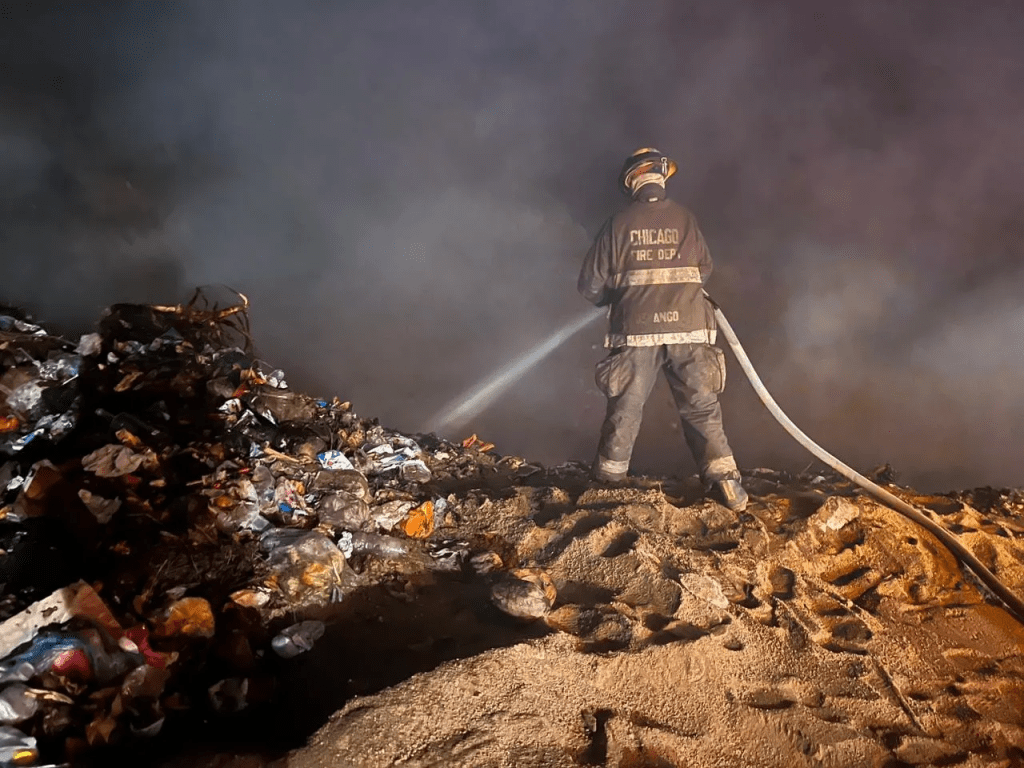 Cihuatlán, Jalisco. 14 de mayo de 2023.- (Letra Fría) Tras casi doce horas de trabajos de combate y liquidación del incendio en el vertedero municipal de Cihuatlán, por fin consiguieron apagar las llamas.