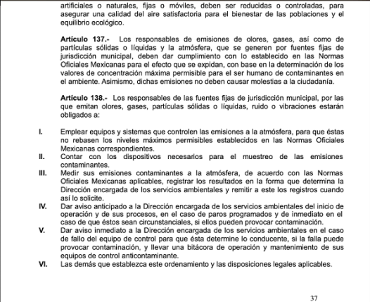 El artículo 38 de dicho ordenamiento señala que los responsables de producir ruido, están obligados a emplear equipos o sistemas para que éste no rebase los niveles máximos permisibles establecidos en las Normas Oficiales Mexicanas correspondientes.