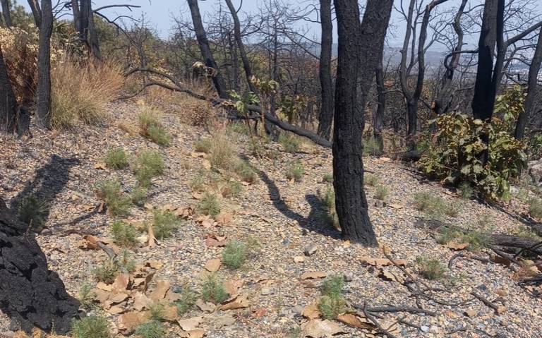 Además, señaló que se han realizado recorridos a pie tierra, constatando que hay pequeños pinos oocarpa en áreas totalmente incendiadas sin árboles adultos con vida.