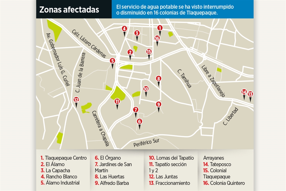 A esta colonia se suma Tlaquepaque Centro, El Álamo, La Capacha, Rancho Blanco, Álamo Industrial, El Órgano, Jardines de San Martín, Las Huertas, Alfredo Barba, Lomas del Tapatío, El Tapatío sección 1 y 2, Las Juntas, Fraccionamiento Arrayanes, Tateposco y Colonia Quintero, informaron desde comunicación social de de Tlaquepaque.