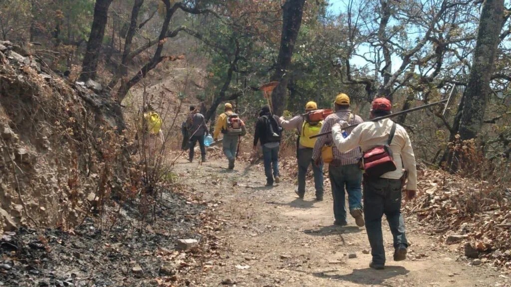 Más de 100 brigadistas siguen combatiendo las llamas que consumen el pino, encino y roble de la Sierra de Cacoma.