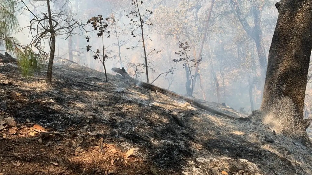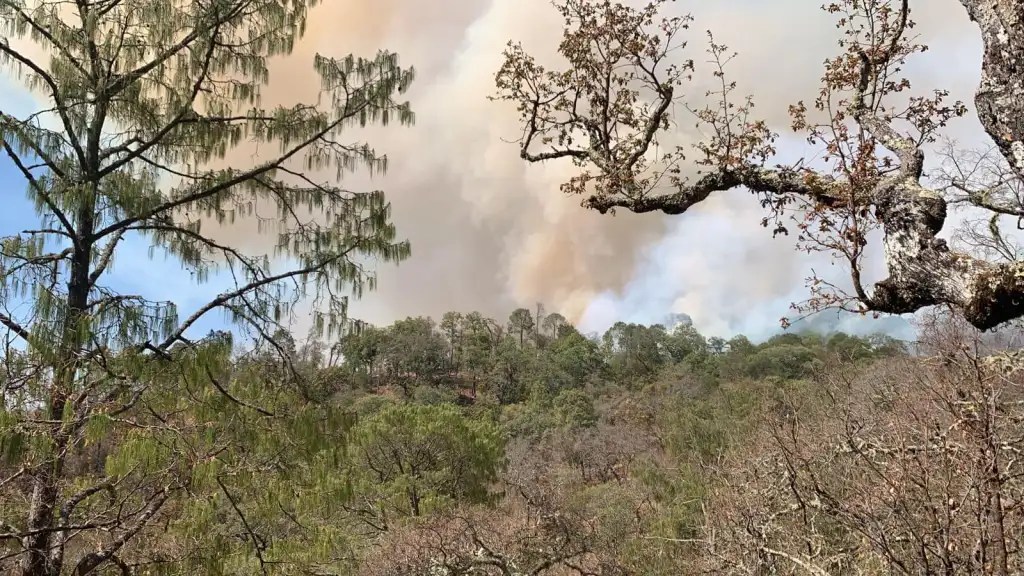 El incendio provocado por la quema de un cuamil continúa. Las flamas que arden en la Sierra de Cacoma han consumido 50 hectáreas más, en total 850 hectáreas de pino, encino y roble. Más de 100 brigadistas siguen combatiendo las llamas.