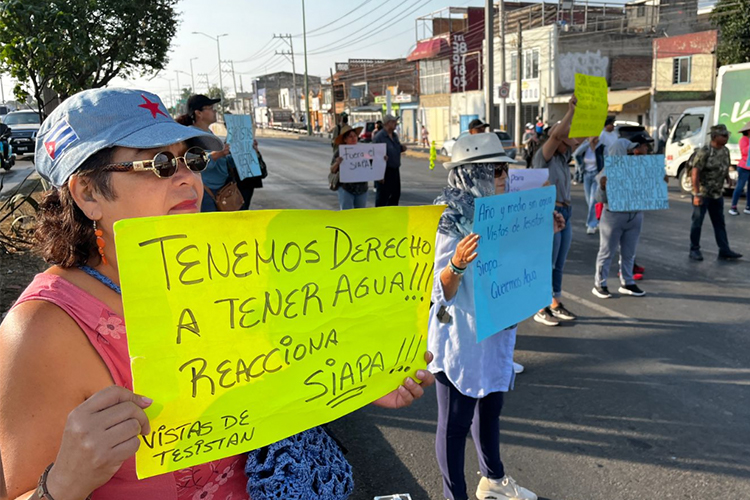 Molestos por tener ya varias semanas con serias deficiencias en el suministro de agua, vecinos de colonias de la delegación Tesistán, al poniente de Zapopan, tomaron esta mañana la avenida Juan Gil Preciado en la zona contigua al puente de Valle Imperial, en demanda de que se les restablezca el servicio.