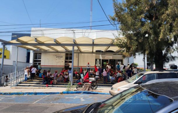 Integrantes de la agrupación Antorcha Campesina se manifiestan esta mañana en las puertas del SIAPA ubicadas sobre avenida Américas en Zapopan, para demandar retorne el suministro de agua a varias comunidades de la zona de Tesistán, afectadas desde hace varias semanas por el desabasto.