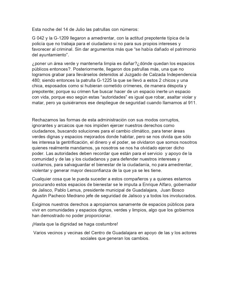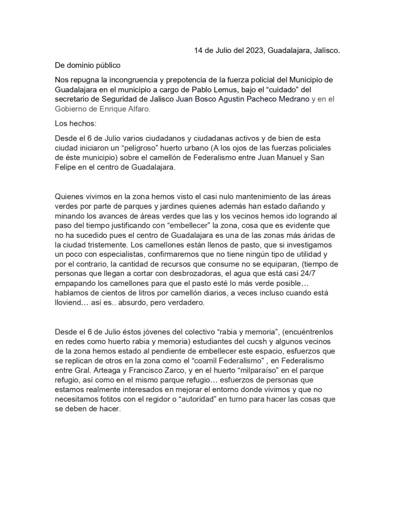 Agresión, Agroecología, Comunicado, Denuncia ciudadana
