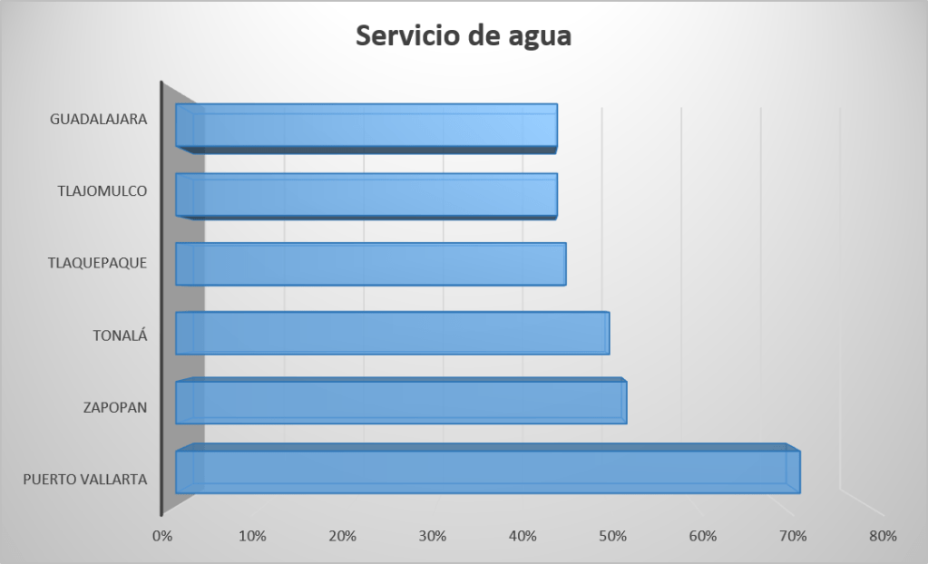 Si se trata de fallas y fugas en el suministro de agua potable, donde más se quejaron fue en Puerto Vallarta. El 72 por ciento de las personas encuestadas reprobó el servicio.