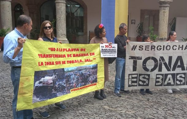 Vecinos de diferentes colonias de Tonalá, afectados por basureros que operan en el municipio se manifestaron esta mañana en el patio del Congreso del Estado para solicitar apoyo de las autoridades para cesar la operación de diferentes tiraderos y centrales de transferencia que hay en la demarcación.