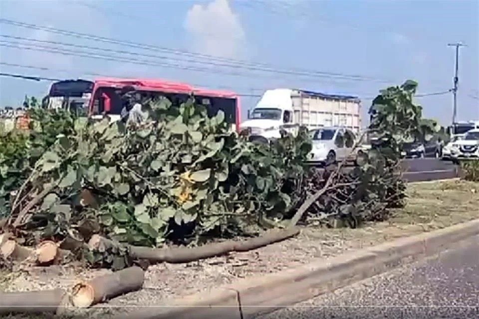Vecinos advirtieron que este domingo fueron derribados decenas de ejemplares adultos, algunos incluso en floración, del camellón de dicha avenida, donde camiones privados se encontraban recogiendo los restos que yacían en el pavimento para triturarlos y trasladarlos.