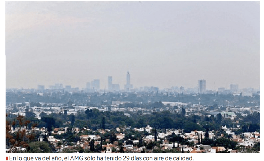 La funcionaria confirmó que en lo que va del año, el AMG solo ha tenido 29 días con aire de calidad, es decir, con un promedio menor a 100 IMECA, de manera que el resto de los días del 2023 han sido con alta exposición a contaminantes atmosféricos, tanto de ozono como por partículas suspendidas.