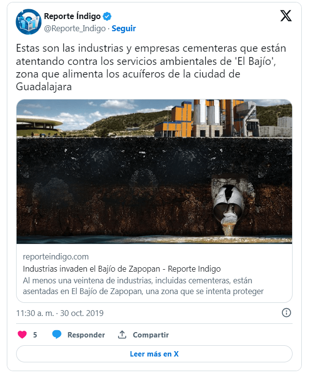 En el “Informe de Evaluación del POTmet (Plan de Ordenamiento Territorial Metropolitano del AMG)” de este 2023, el Instituto advirtió sobre estas zonas de recarga de acuíferos que se están eliminando y las que pueden desaparecer bajo la plancha de concreto de la urbe.