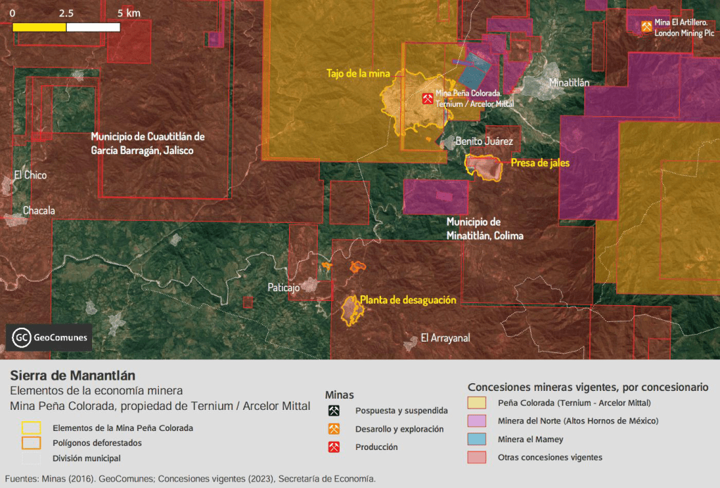 Buena parte de la concesión que permite la explotación de la mina Peña Colorada está en el territorio del ejido Ayotitlán.