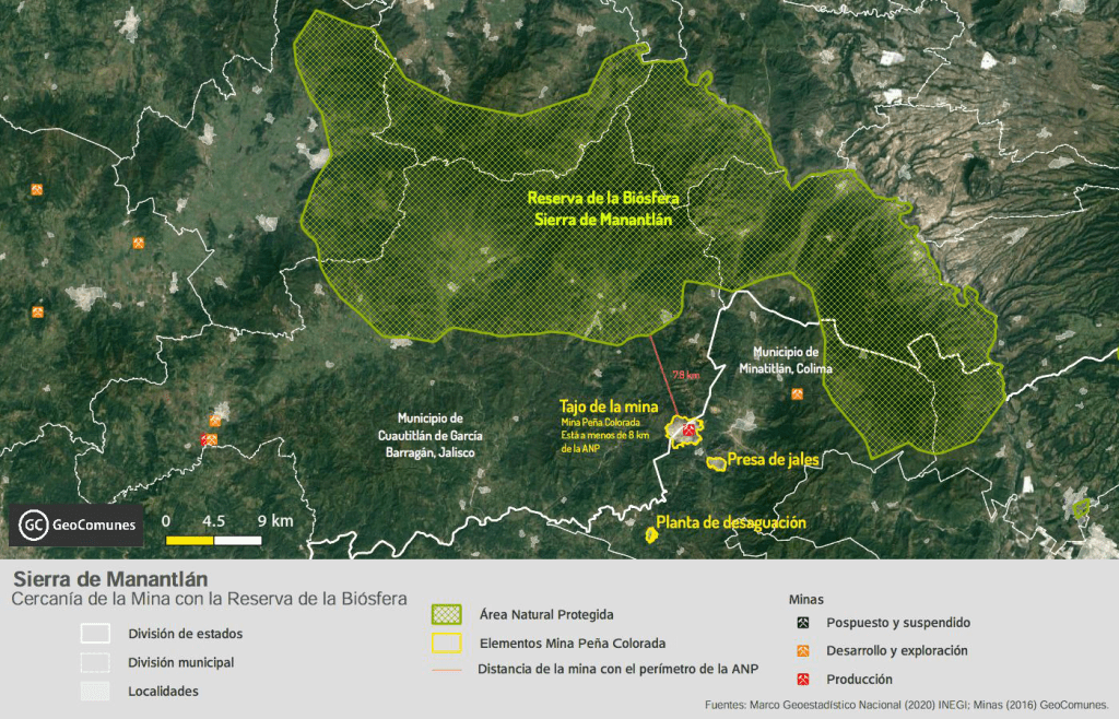 En su informe publicado en 2022, la organización no gubernamental Global Witness señaló: “Las operaciones mineras han impulsado la deforestación, la pérdida de vida silvestre, el cambio climático y la contaminación tóxica… ha sido imposible cuantificar los daños a una verdadera escala, ya que la empresa minera mantiene un estricto control sobre el área de la Sierra de Manantlán”.