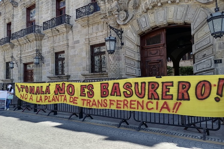 Con la consigna de «¡Tonalá no es basurero, no a la planta de transferencia!», vecinos organizados de Tonalá protestaron este lunes a las afueras de palacio de gobierno para exigir la reubicación del Centro de Transferencia Metropolitano.