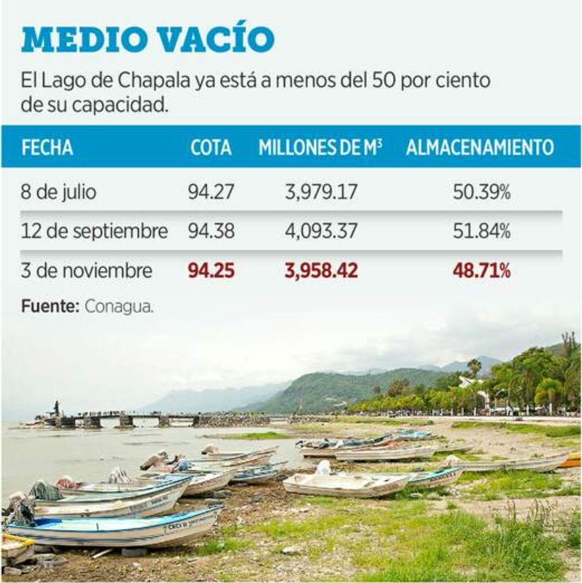 Chapala es la principal fuente de abasto de agua para la ZMG y la población ya empieza a sentir los efectos del temporal raquítico que se tuvo.
