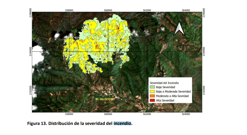 “El comportamiento del fuego en el incendio se categorizó como de baja intensidad y superficial por las autoridades estatales. Sin embargo, observando la severidad en imágenes de satélite, se puede inferir que hubo comportamiento intenso en algunas zonas dentro del polígono, sobre todo aquellas que corresponden a las partes altas de los parteaguas de la cuenca”, se lee en el documento.