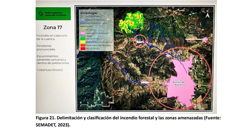 “Además, considerando que la SEMADET elaboró un mapa de la severidad del incendio y en donde indicaba las poblaciones que estaban amenazadas por el incendio en donde incluyó al poblado de El Jalocote y a la misma cabecera municipal”, puntualizó el informe.