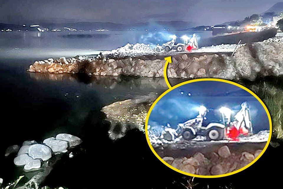 La noche del domingo, vecinos captaron maquinaria pesada echando material para hacer un muelle privado. Crédito: Especial