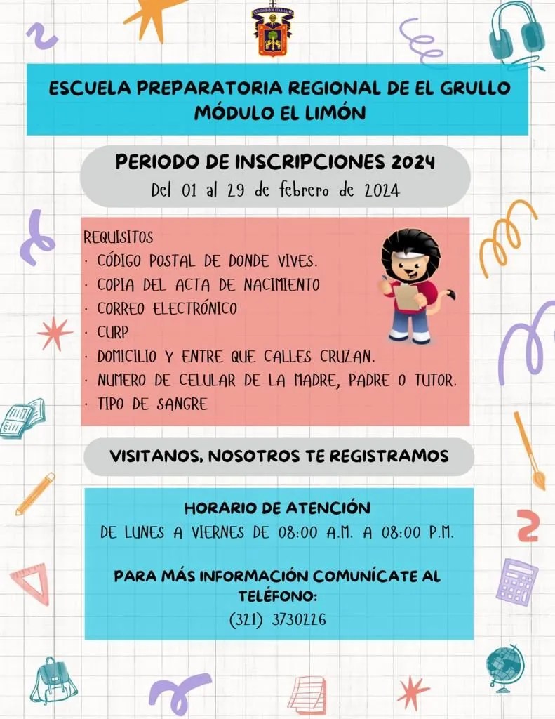 Durante el mes de febrero estarán abiertas las inscripciones para ingresar a la preparatoria de El Limón. La institución ha compartido la información a través de sus redes sociales y también han acudido personalmente a las secundarias y telesecundarias para darles información.