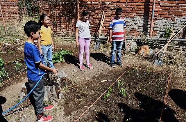En este caso fueron las y los estudiantes de la Escuela Primaria Federal Ignacio Villaseñor Lazcano y Francisco S. Maldonado quienes se están involucrando con los procesos de siembra, cuidado y cosecha de alimentos mediante procesos orgánicos.