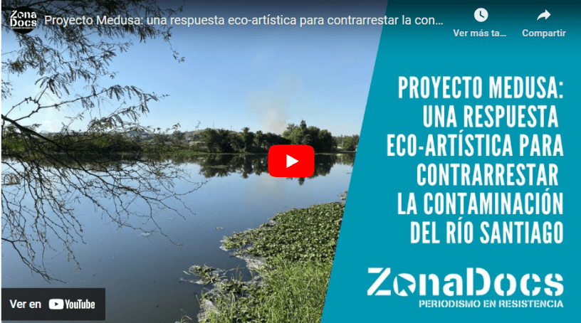 Angélica Barba, artista ecofeminista impulsora de “Medusa”, advierte que, aunque es una problemática que pareciera estar “lejos de la metrópoli”, las consecuencias de la contaminación del río Santiago llegan al Área Metropolitana de Guadalajara por medio de alimentos cultivados y regados con el agua del río.