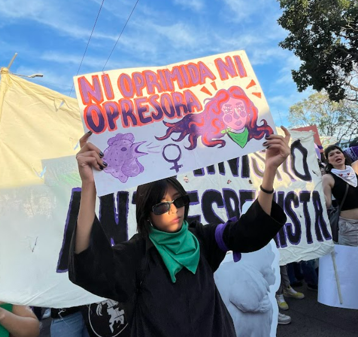 “Estamos aquí en el 8M representando a las hembras de otras especies, porque también necesitan derechos. Buscamos la liberación de todas, que ninguna hembra sea explotada, que se acabe el consumismo animal. Exigimos liberación total y veganismo” expresó integrante del contingente de Guadalajara Climate Save
