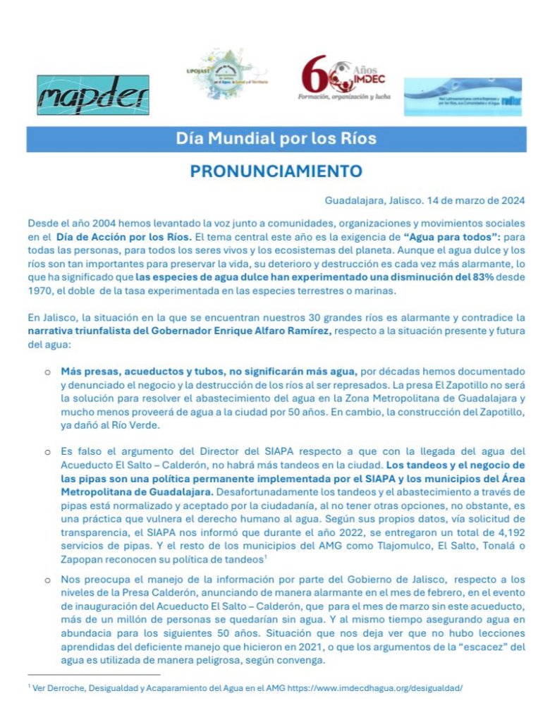 Agua, Comunicado, IMDEC, Medio ambiente