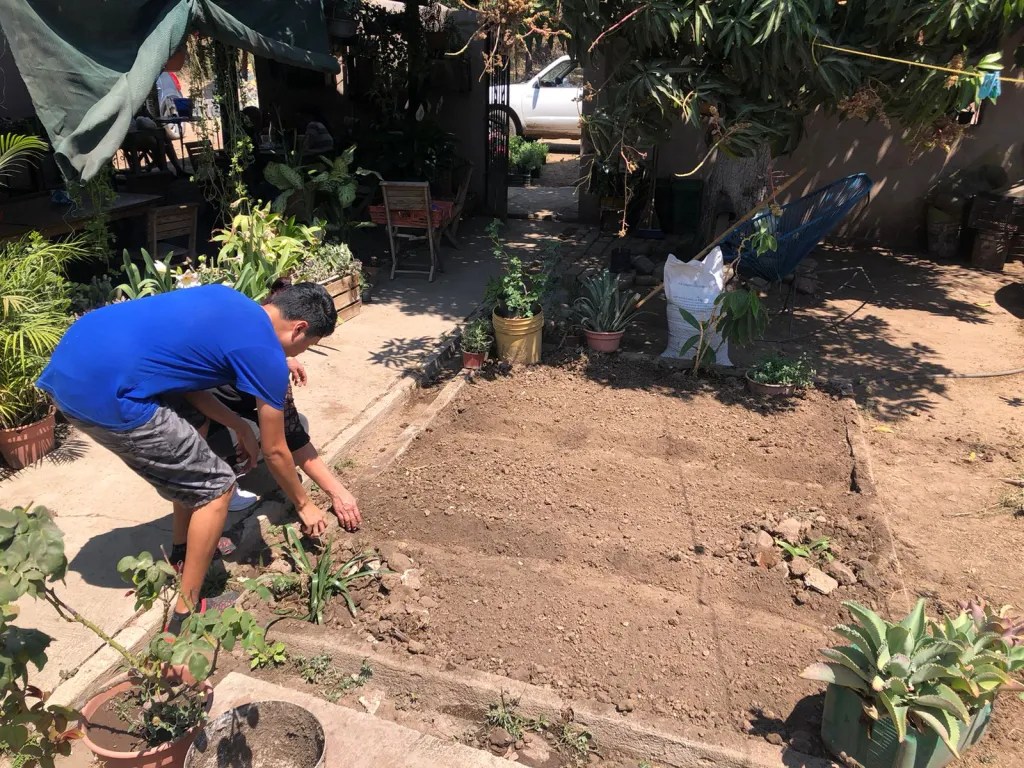 Sí, Liz me acaba de informar que ya sembraron tanto en las primeras líneas de huerto vertical tanto como en una pequeña cama de cultivo en el suelo. El patio ya no estará pelón, se nota un brillo diferente en la mirada de Ibeth, sus niños han sembrando y dejaron el celular en la sala, la dinámica familiar de ahora en adelante será otra.