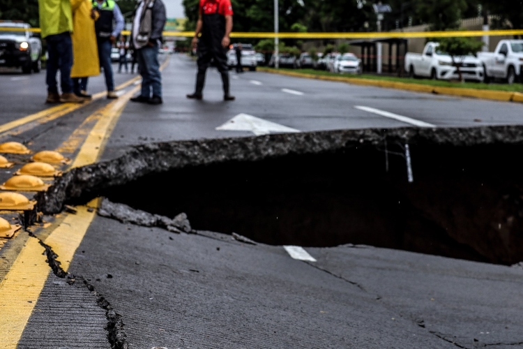 Destacó que a la fecha no se sabe cuál es la capacidad de carga de la avenida López Mateos, ya que transitan camiones pesados con decenas de tonaladas y cientos de vehículos compactos, lo que genera fracturación y movimiento del suelo, algo podría explicar este socavón de grandes dimensiones.