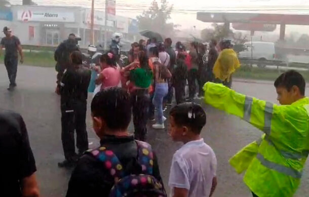 Inconformes, los manifestantes bloquearon la avenida López Mateos en sentido sur a norte, causando un tapón que llegó hasta el poblado de Buenavista. Representantes de gobierno acudieron y prometieron recibir a una comitiva. (Por Héctor Escamilla Ramírez)