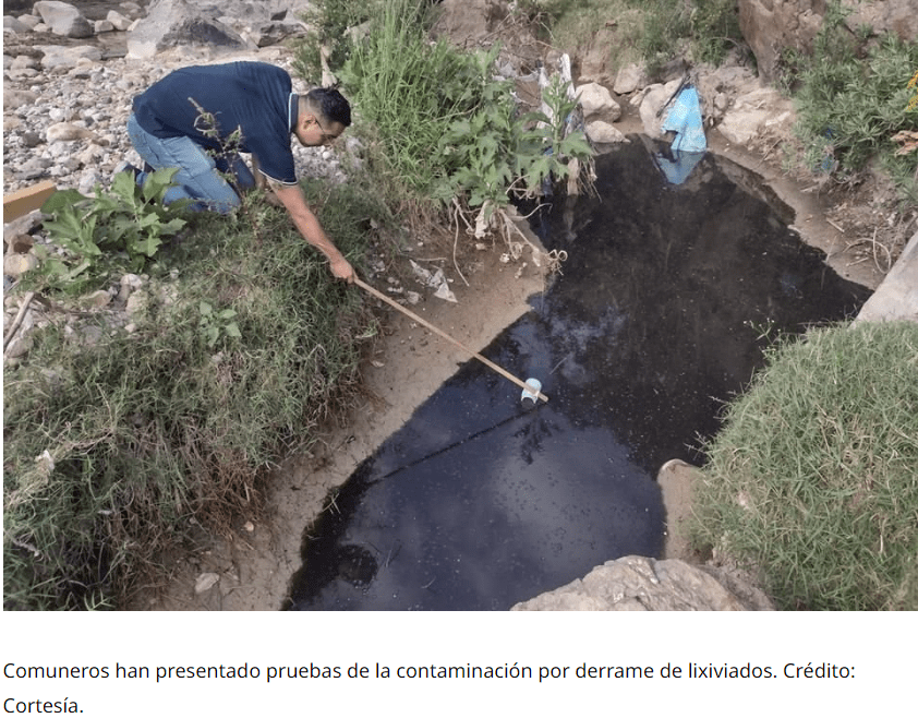 «Cuando se llenan sus lagunas y lo rebasan, sobre todo en las lluvias, ponen mangueras y tiran los lixiviados a la cuenca. (…) Las pruebas están a la vista: muerte de árboles de más de un siglo de mango, (…) le salieron ronchas a la gente», sostuvo.