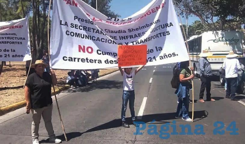 De nueva cuenta, integrantes de la comunidad indígena de Mezquitán se manifestaron ayer en las afueras de la delegación Jalisco de la Secretaría de Infraestructura, Comunicaciones y Transportes (SICT).